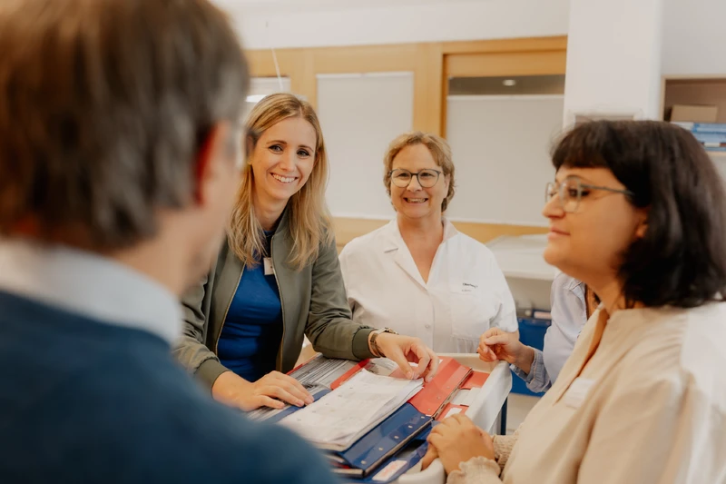 Unsere PsychologInnen , FachärztInnen, ThearpeutInnen und das Pflegepersonal arbeiten eng zusammen. Regelmäßige Fortbildungen sind für die interdisziplinären Behandlungsteams ebenso selbstverständlich wie der Austausch untereinander. In den täglichen Besprechungsrunden werden die Entwicklung der Patientinnen und Patienten besprochen und die weitere Behandlung koordiniert.